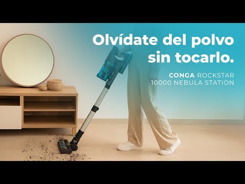 Conga Rockstar 10000 Nebula Station Aspirador escoba sin cables sin bolsa 3 en 1 con ciclón paralelo y base de autovaciado. Potencia de 450 W, 30 kPa y 70 minutos de autonomía.