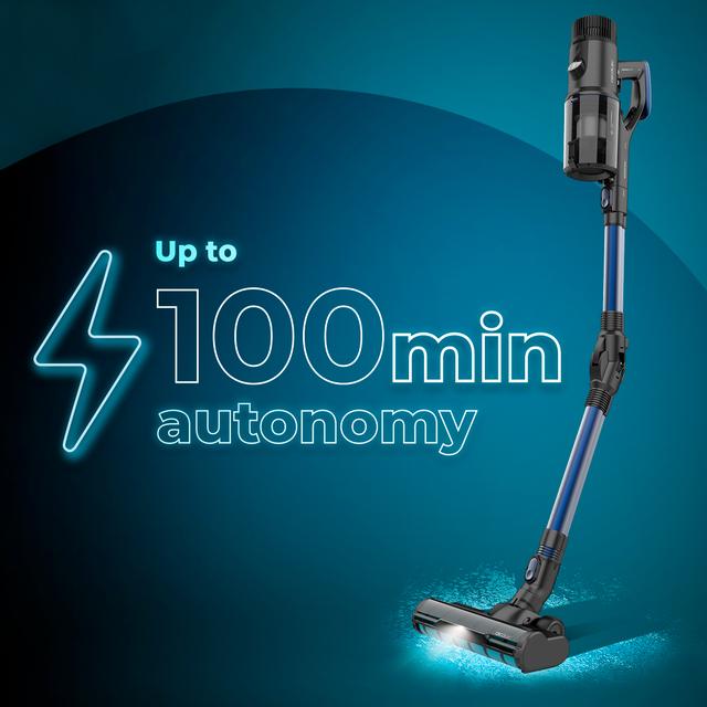 - Gran autonomía. Aprovecha sus hasta 100 minutos de autonomía para limpiar tu casa a la primera y reduce el tiempo de carga a 4-5 horas con su batería de Ion-Litio de 2500 mAh y 37 V.