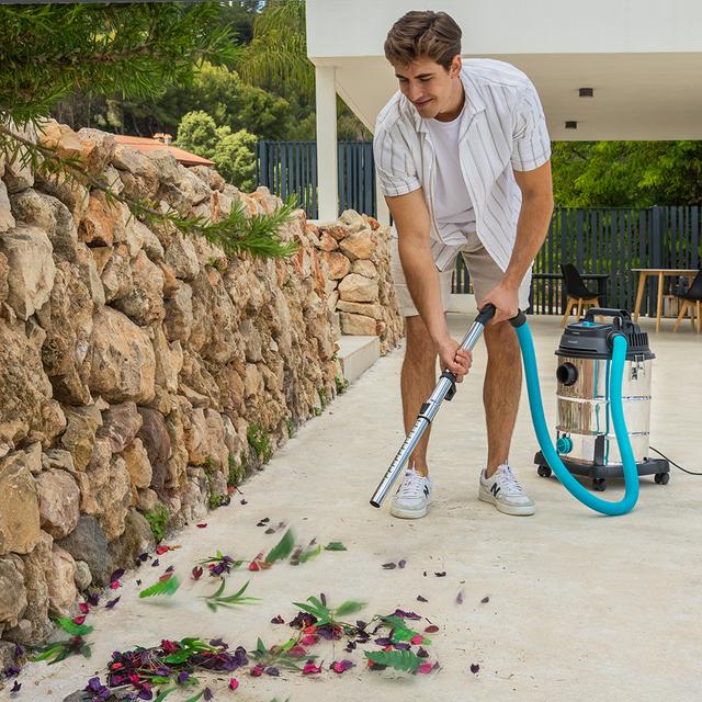 - El aspirador cuenta con 4 ruedas de goma que proporcionan un fácil desplazamiento y movilidad para evitar tirones y giros difíciles, además de evitar riesgos de rayar los suelos. Con un cable de 5 metros de longitud, un tubo flexible y tubos rígidos para facilitar la limpieza de cualquier rincón, incluso los más complicados, gracias a un radio de acción 5 metros.