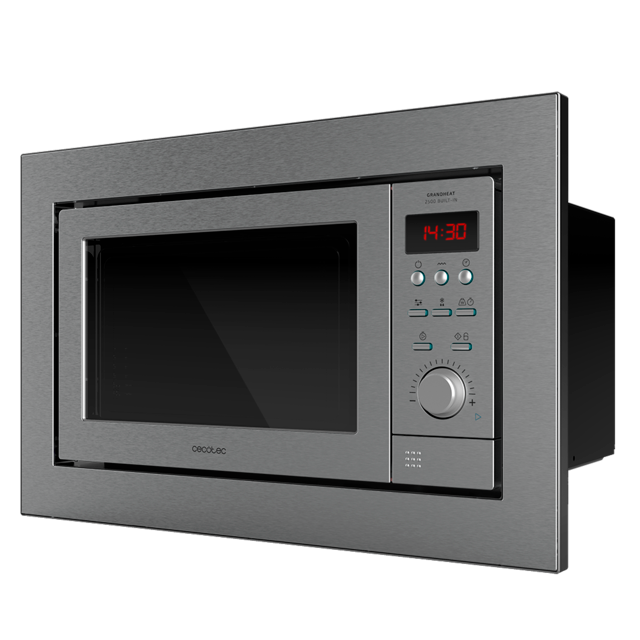 GrandHeat 2500 Built-In Steel. Microondas encastrable Digital de 900W, Integrable, 25 Litros, Grill, 10 funciones preconfiguradas, Multicooking, Quick Start