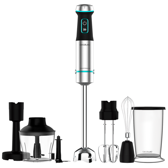 - Batidora de mano con 1200 W de potencia máxima, perfecta para conseguir mezclas finas y homogéneas de forma rápida y sin esfuerzos.