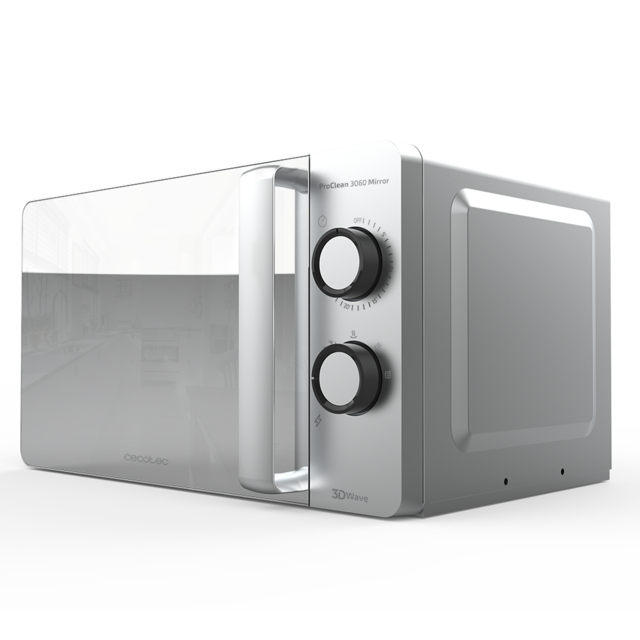 ProClean 3060 Mirror. Microondas de 700 W, 20 L capacidad, Revestimiento Ready2Clean para una mejor limpieza, Tecnología 3DWave, Color plateado