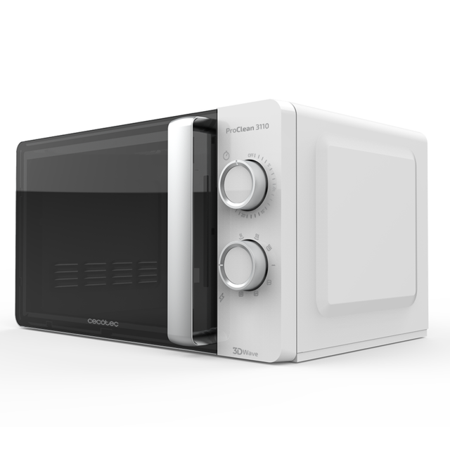 Microondas blanco con Grill y con Revestimiento Ready2Clean para una mejor limpieza. Tecnología 3DWave, input 1150 W, output 700 W y Grill 800 W. 20 l. Diseño elegante con puerta FullCrystal. 6 niveles. ProClean 3110 de Cecotec.