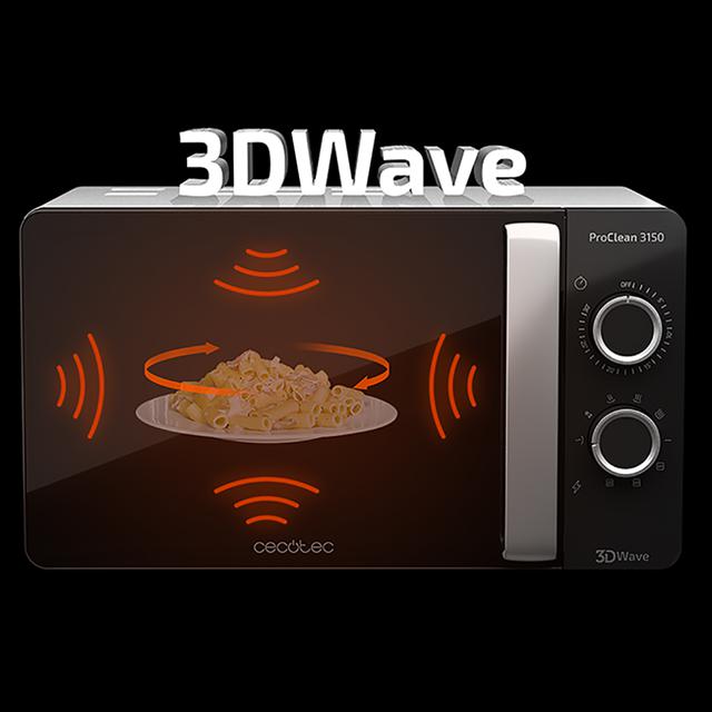- Tecnología 3DWave con un sistema de ondas más eficiente que envuelve al 100 % los alimentos.